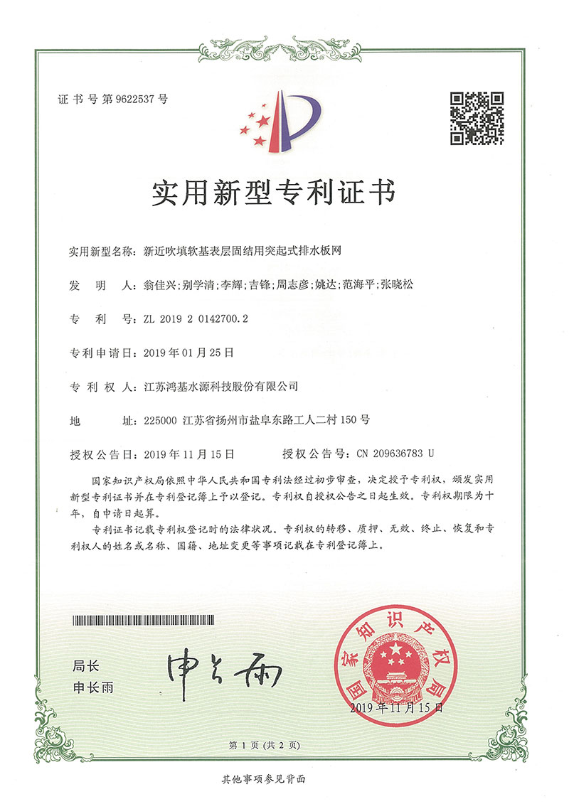 新近吹填軟基表層固結(jié)用突起式排水板網(wǎng)